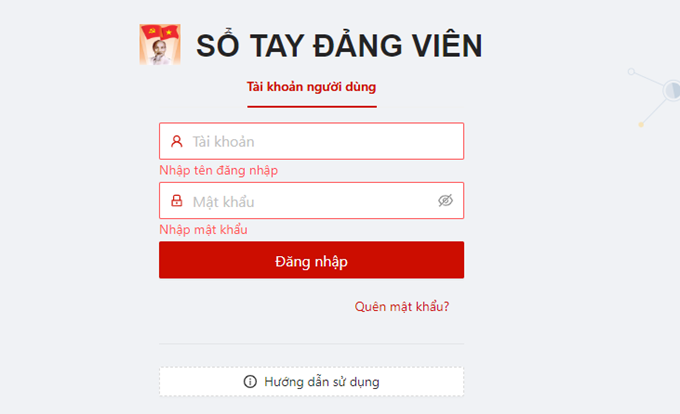 Bước 1. Đăng nhập Sổ tay đảng viên điện tử theo địa chỉ: Stdv.dukcqtw.dcs.vn